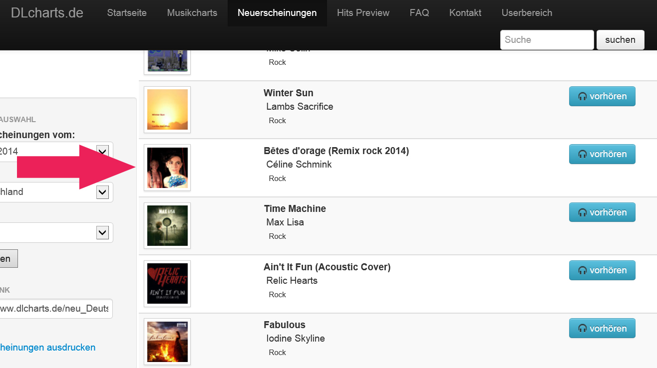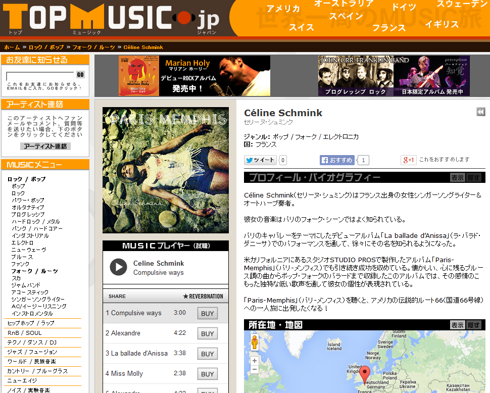 ACTUS du 16/05/14 Les chansons de Céline Schmink sont répertoriées sur Musictonic, site américain et Groupie, le site japonais des amateurs de pop et rock international. Comme vous pouvez le constater, les présences à l’étranger se multiplient des dernières semaines !