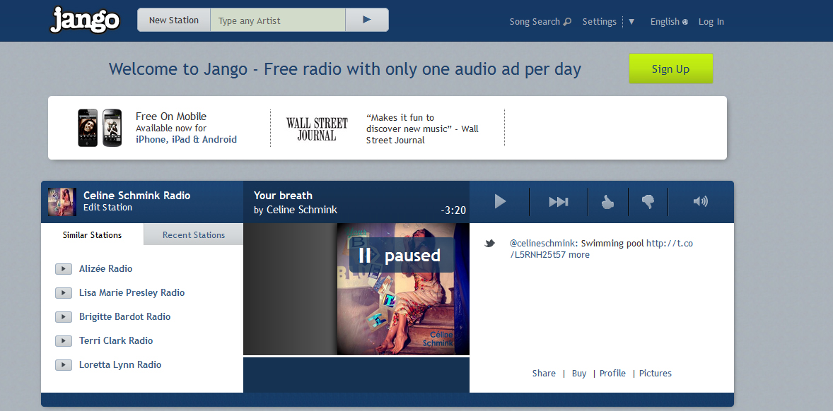 ACTU du 18/06/14 La chanson Your breath continue son tour du monde des radios. Elle est désormais diffusée également sur Jango, free radio basée à N.Y !
