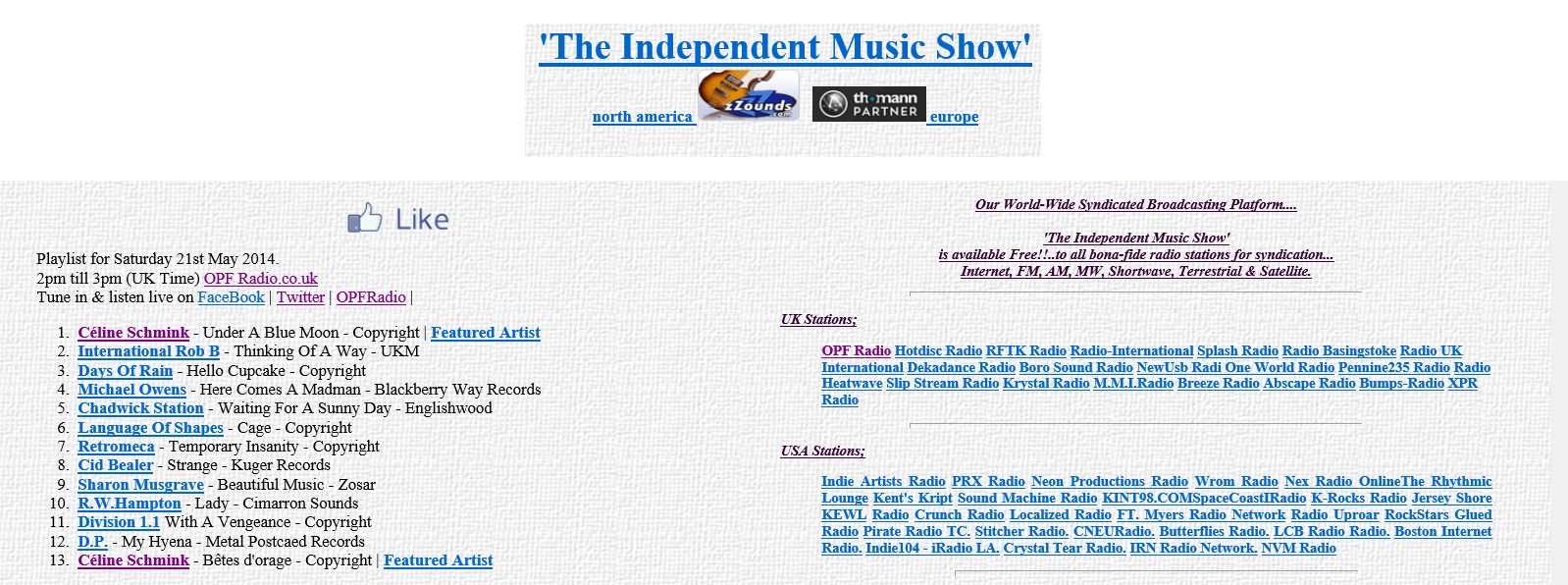 Hotdisc Radio, RFTK, Radio Radio-International, Splash Radio, Radio Basingstoke, Radio UK, International Dekadance Radio, Boro Sound Radio, NewUsb Radio, One World Radio, Pennine235 Radio, Radio Heatwave, Slip Stream Radio, Krystal Radio, M.M.I.Radio, Breeze Radio, Abscape Radio, Bumps-Radio XRP Radio,
