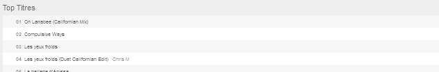 ACTU du 04/04/2015 Après le succès de la campagne promotionnelle de « On Larrabee » sur top sites (voir liste ci-dessous), c’est au tour du duo « Les yeux froids » de faire le tour du monde ! Lors de la campagne de « On Larrabee », 12 000 internautes ont pu découvrir la chanson ! Souhaitons d’aussi belles retombées au duo « Les yeux froids – Feat.Chris’M »