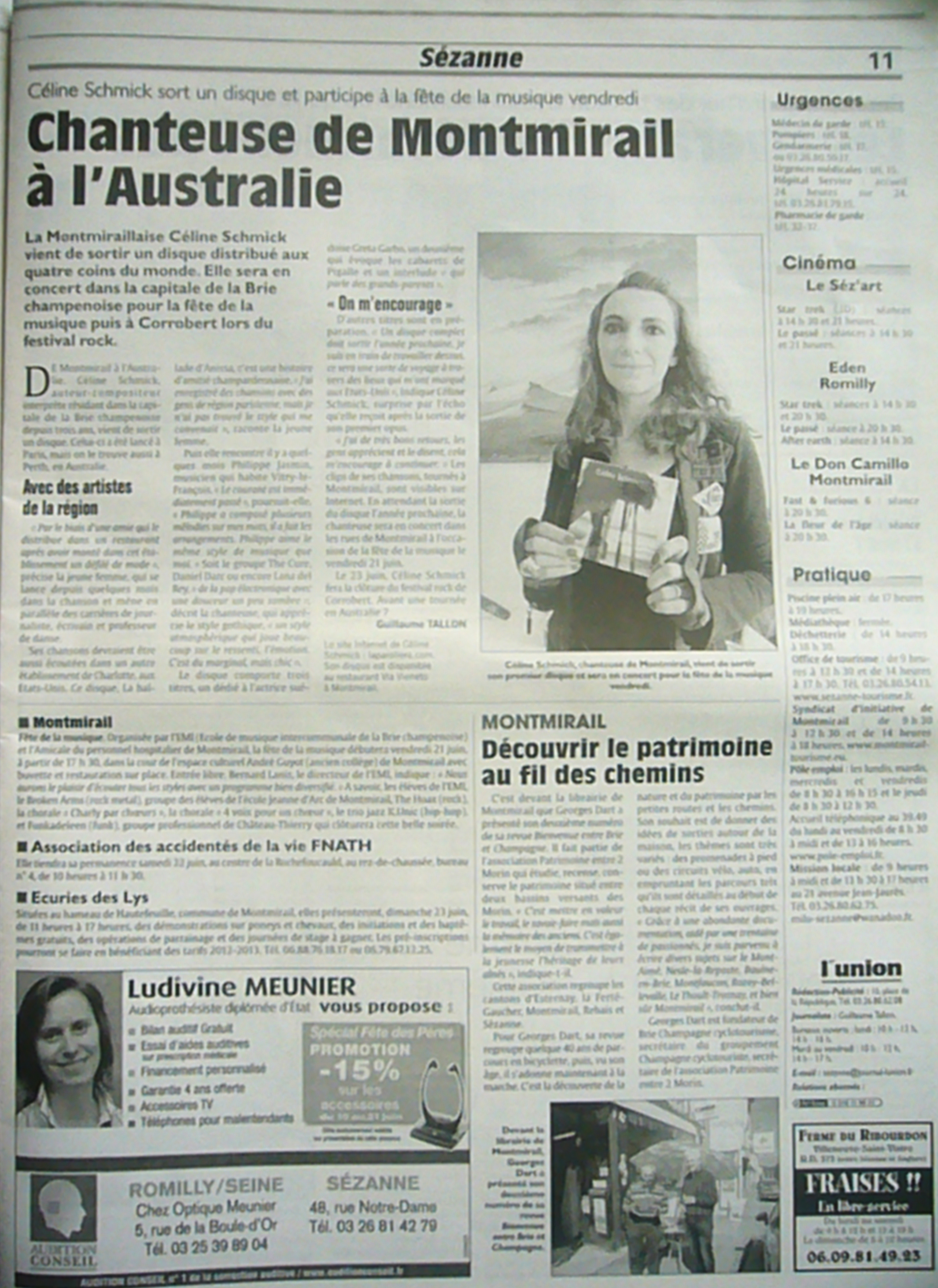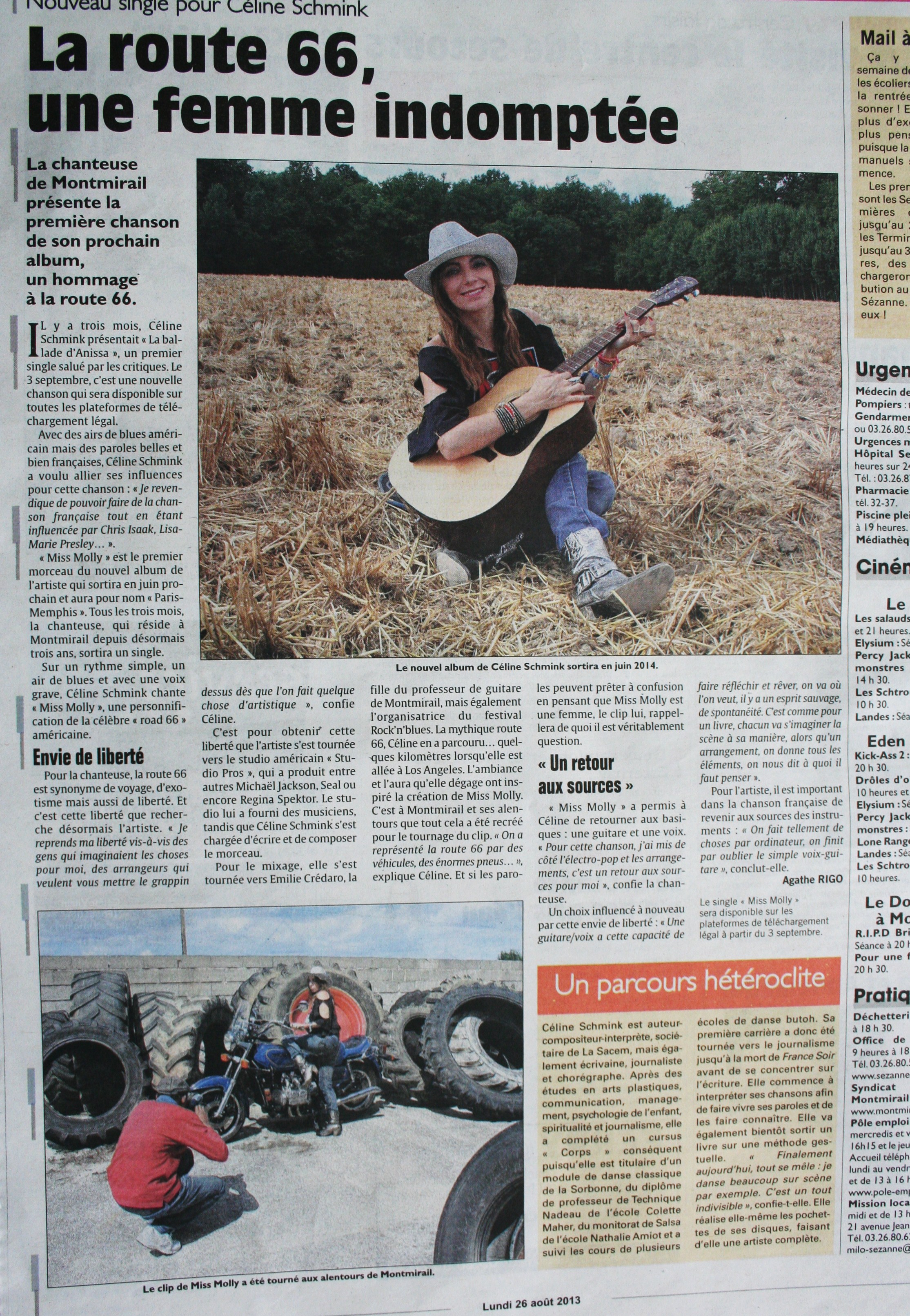 Le 01/09/2015 Céline bénéficie cette semaine d’un article-interview dans l’Union.