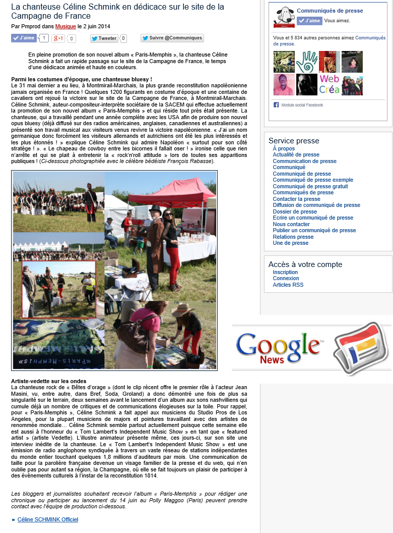 On parle de Céline Schmink (et de Bonaparte!) dans Google Actus en ce 02 juin 2014.