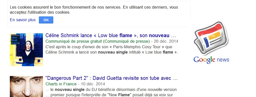 Le 08/01/2015 Céline est dans Google Actus ce matin, avec la sortie de son single « Low blue flame »