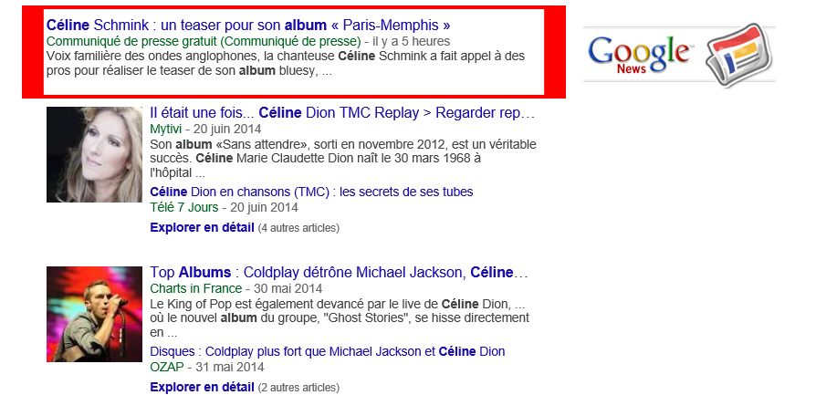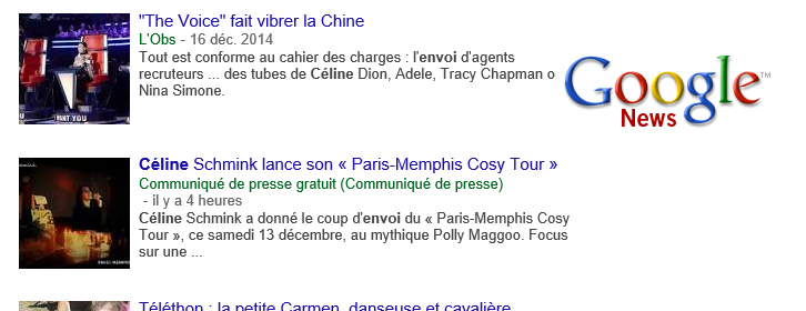Le 27/10/14. Céline est de nouveau aux actus Google dans un article parlant de ses derniers passages Radio et Télé !