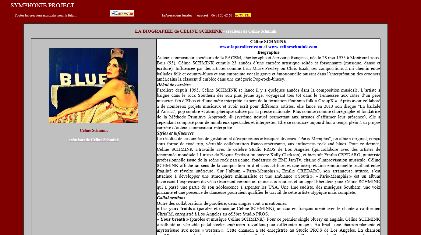Tags : Céline Schmink, site officiel, 2014, auteur, compositeur, interprète, sociétaire de la sacem, chansons, musique, composition musicale, arrangements.