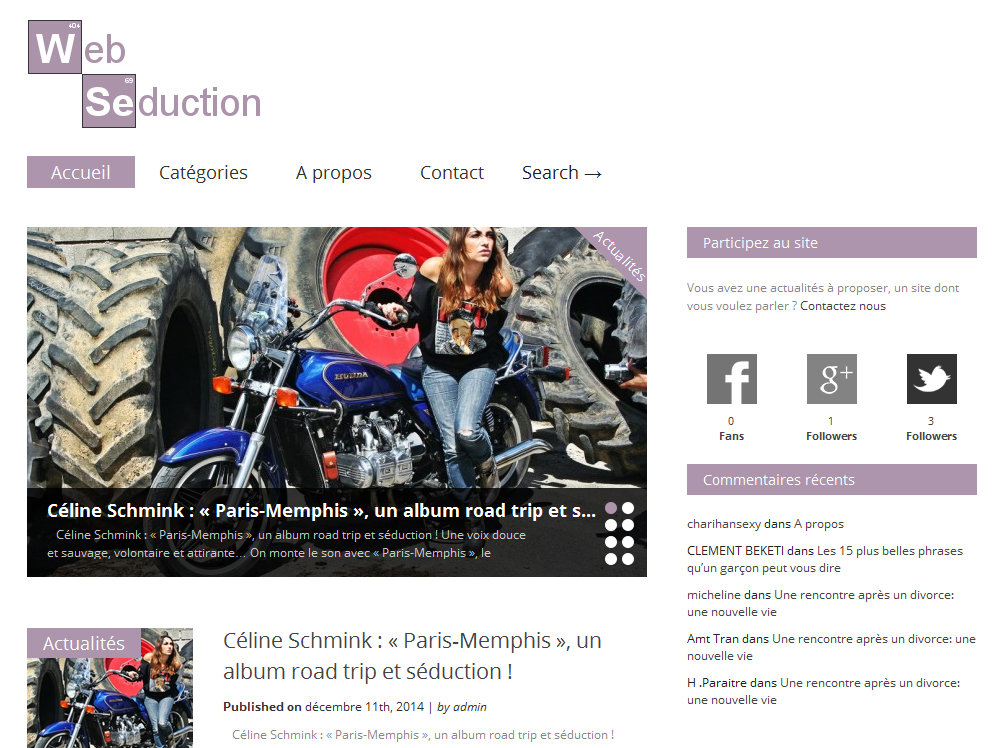 Le 11/12/14 Céline est à La Une du blog Web Séduction ! On y parle de Paris-Memphis et de relations professionnelles et amoureuses !